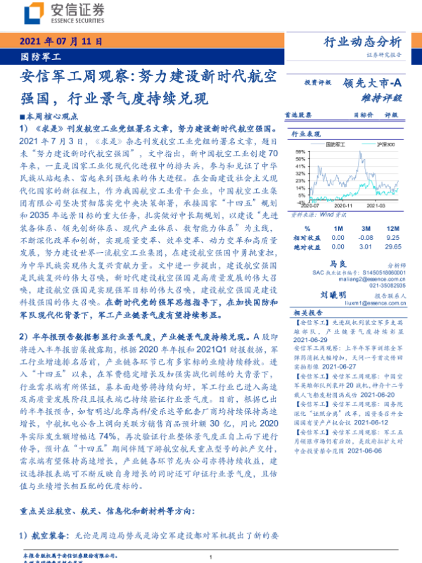 【安信证券】【20210711】安信军工周观察:努力建设新时代航空强国,行业景气度持续兑现-11页 行业研究