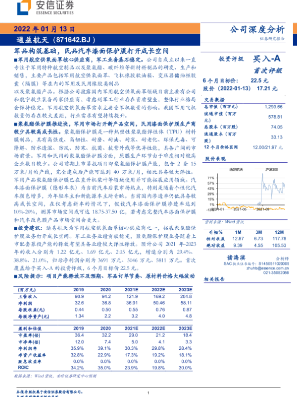 【安信证券】【20220113】军品构筑基础,民品汽车漆面保护膜打开成长空间-25页 行业研究