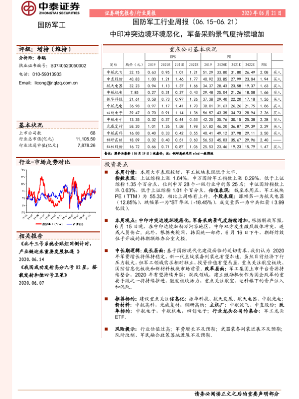 【中泰证券】【20200621】国防军工行业周报:中印冲突边境环境恶化,军备采购景气度持续增加-13页 行业研究