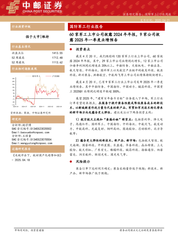 【中邮证券】【20250421】国防军工行业报告-15页 证券期货研究报告