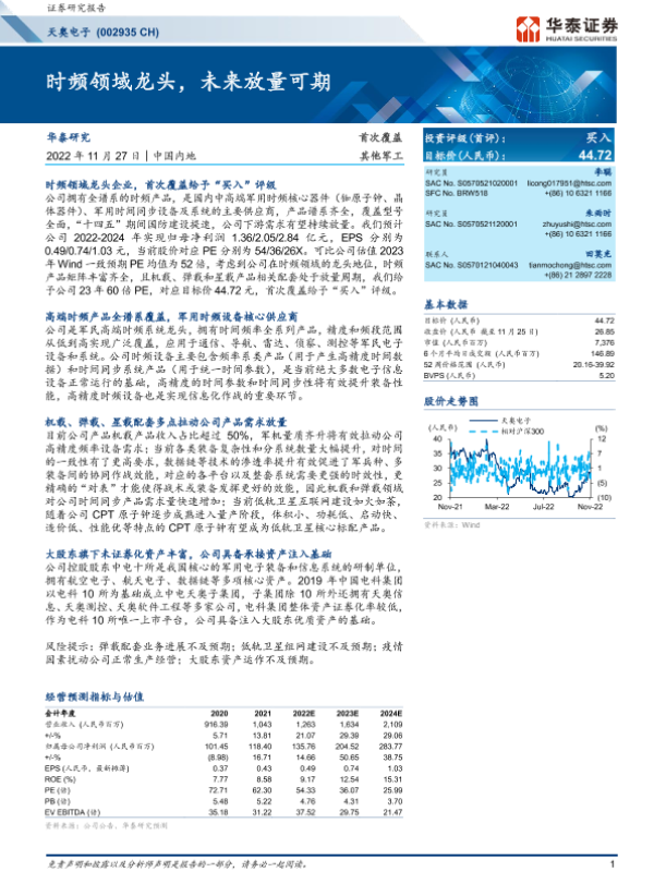 【华泰证券】【20221127】天奥电子-002935.SZ-时频领域龙头,未来放量可期-30页 行业研究