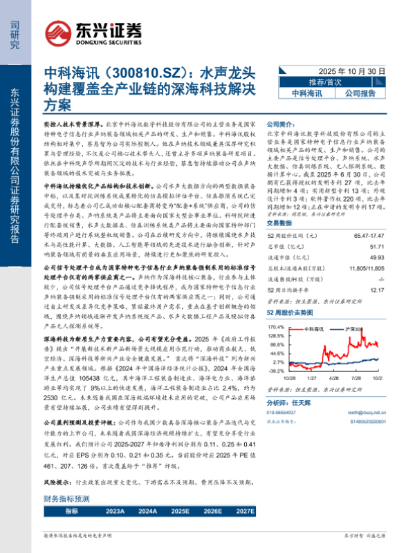 【东兴证券】【202510】中科海讯(300810.SZ):水声龙头 构建覆盖全产业链的深海科技解决方案-21页 证券期货研究报告