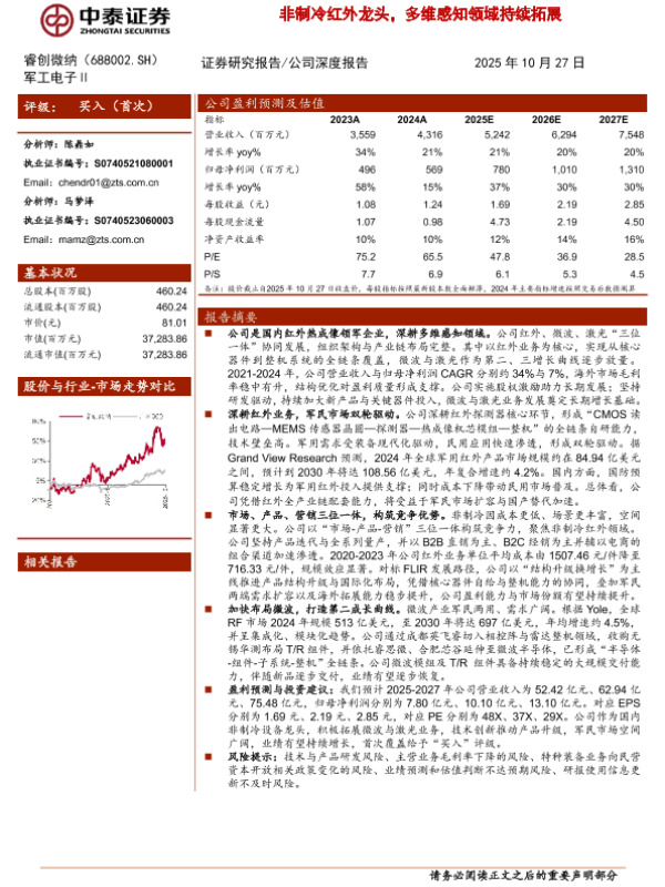 【中泰证券】【202510】睿创微纳(688002)非制冷红外龙头,多维感知领域持续拓展-34页 证券期货研究报告