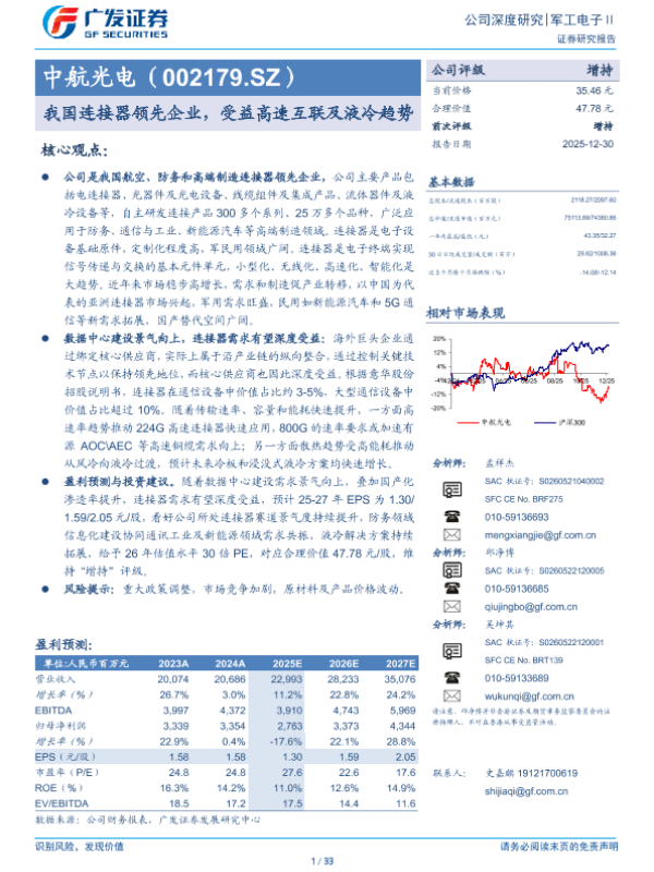 【广发证券】【202512】我国连接器领先企业,受益高速互联及液冷趋势-33页 证券期货研究报告