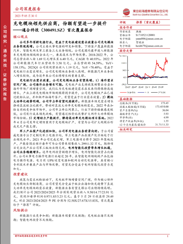 【东亚前海证券】【20230530】通合科技(300491.SZ)首次覆盖报告:充电模块领先供应商,份额有望进一步提升-28页 行业研究