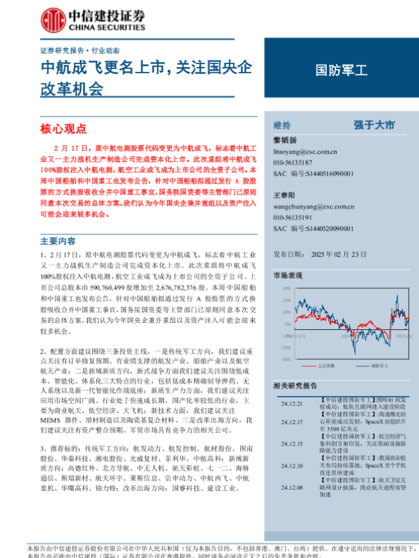 【中信建投证券】【20250223】国防军工行业:中航成飞更名上市,关注国央企改革机会-24页 行业研究