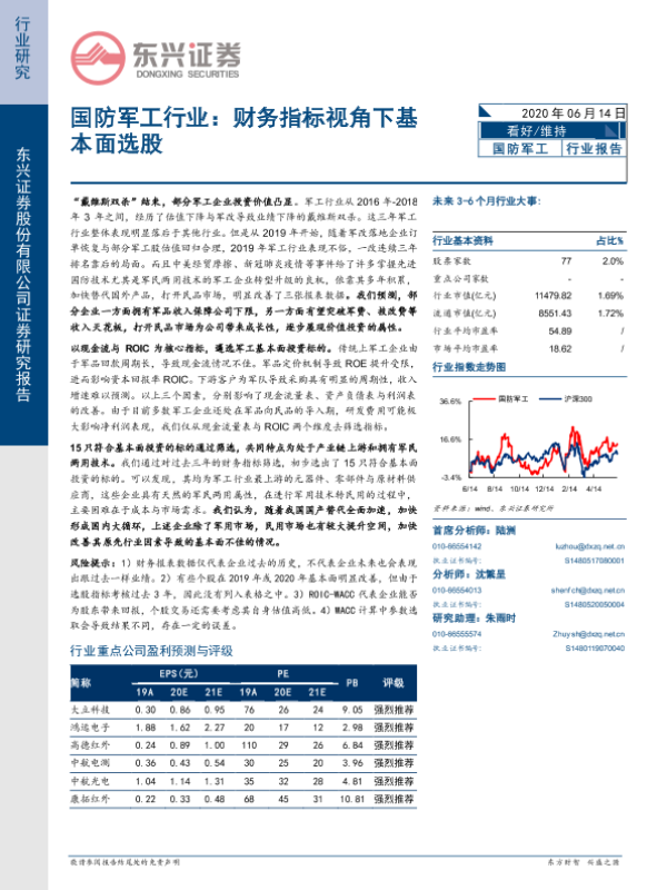 【东兴证券】【20200614】国防军工行业:财务指标视角下基本面选股-8页 行业研究