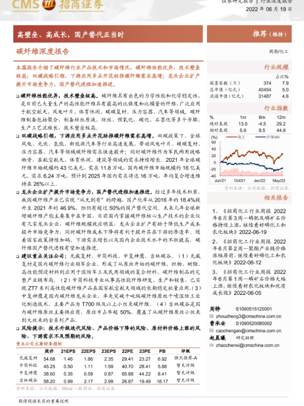 【海通证券】【20220619】碳纤维深度报告:高壁垒、高成长,国产替代正当时-25页 行业研究