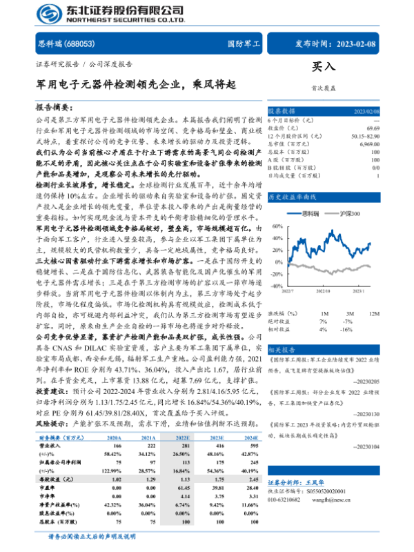【东北证券】【20230208】思科瑞(688053)军用电子元器件检测领先企业,乘风将起-33页 行业研究