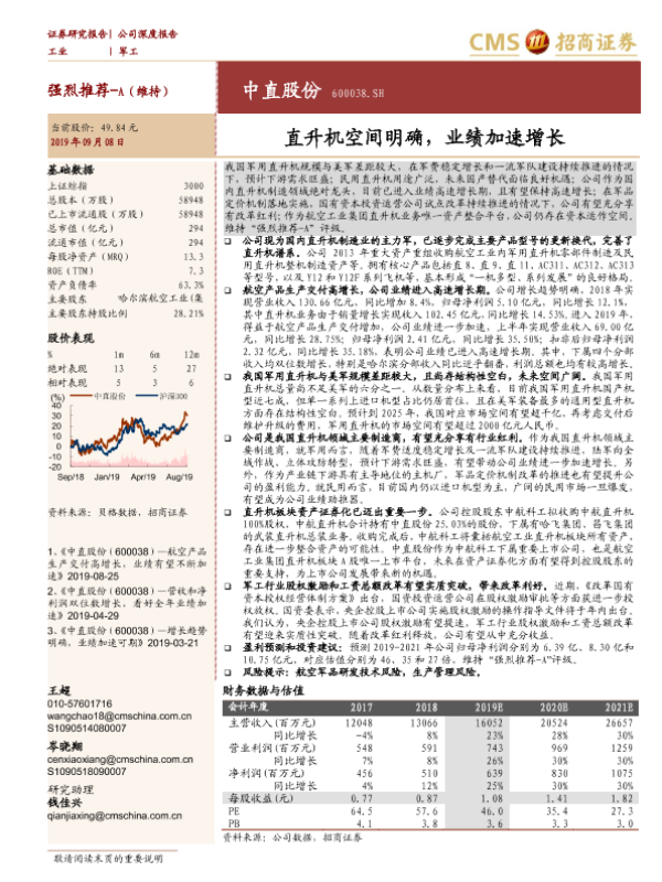 【海通证券】【20190908】中直股份-600038.SH-直升机空间明确,业绩加速增长-29页 行业研究