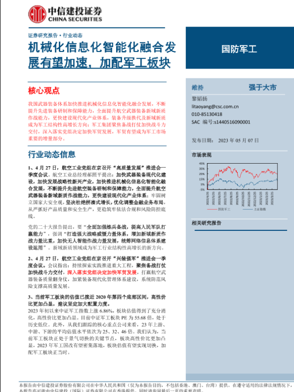 【中信建投证券】【20230507】国防军工行业:机械化信息化智能化融合发展有望加速,加配军工板块-26页 行业研究