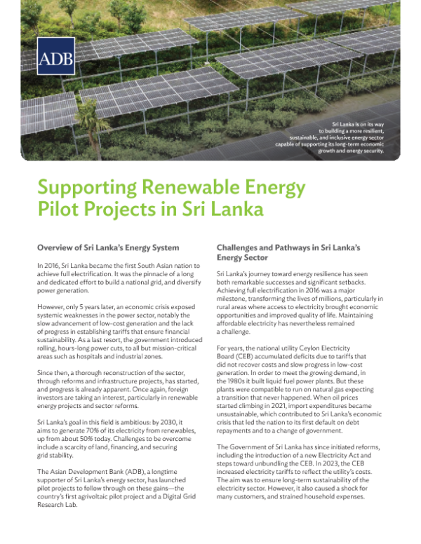 【Asian Development Bank (ADB)】【2025】Supporting Renewable Energy Pilot Projects in Sri Lanka-7页 行业研究