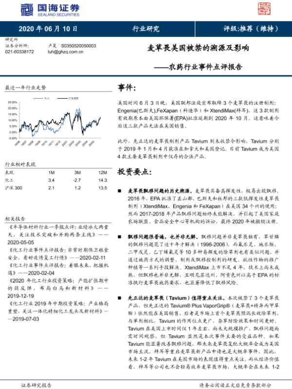 【国海证券】【20200610】农药行业事件点评报告:麦草畏美国被禁的溯源及影响-10页 行业研究