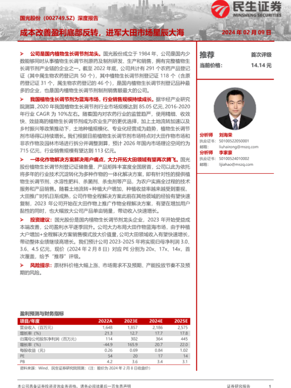 【民生证券】【20240209】20240209-民生证券-国光股份-002749.SZ-深度报告:成本改善盈利底部反转,进军大田市场星辰大海-24页 行业研究