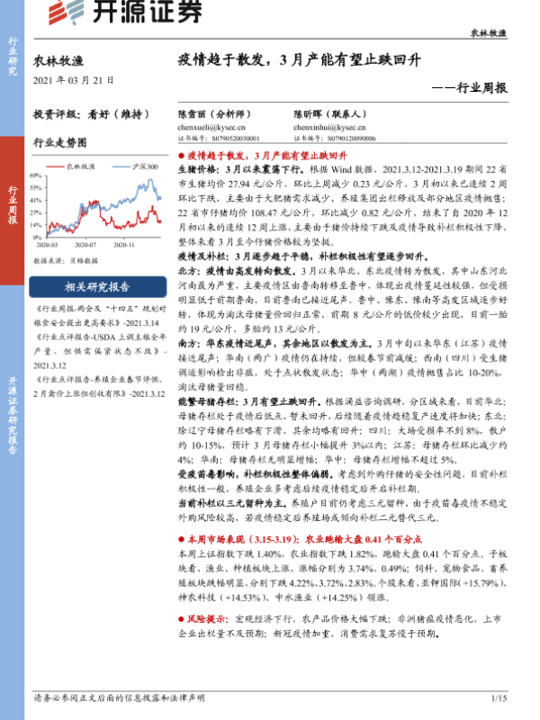 【开源证券】【20210321】农林牧渔行业周报:疫情趋于散发,3月产能有望止跌回升-15页 行业研究
