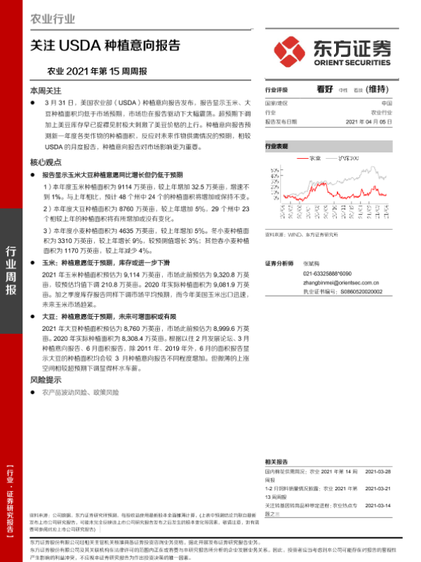 【东方证券】【20210405】农业2021年第15周周报:关注USDA种植意向报告-9页 行业研究