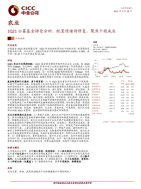 【东方证券】【20210505】农业2021年第19周周报:Q1农业机构持仓-9页 行业研究