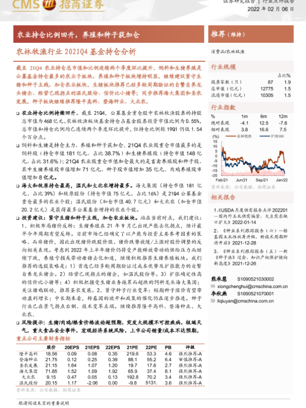 【海通证券】【20220206】农林牧渔行业2021Q4基金持仓分析:农业持仓比例回升,养殖和种子获加仓-7页 证券期货研究报告