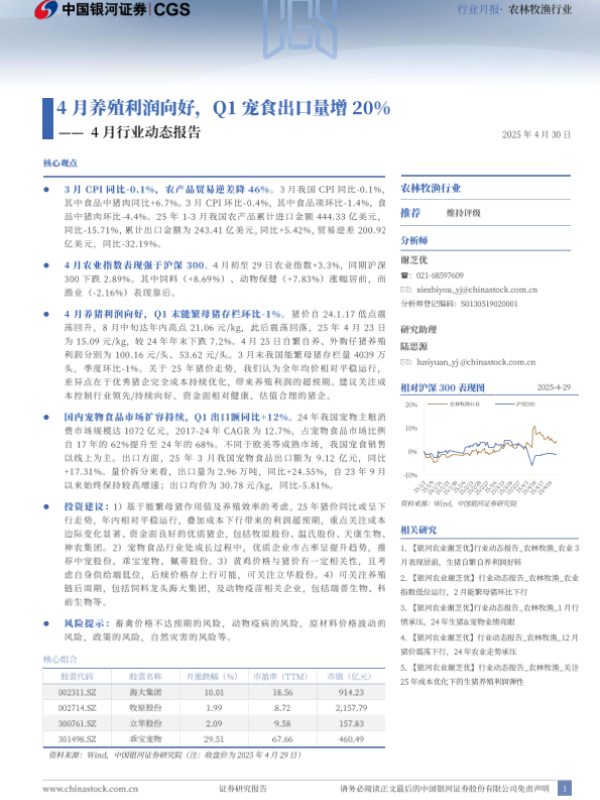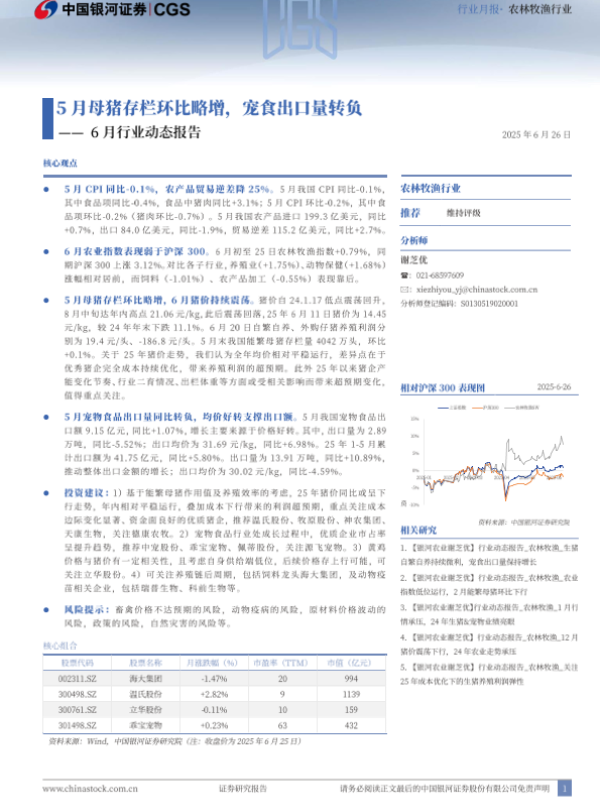 【银河证券】【20250626】农林牧渔行业6月行业动态报告:5月母猪存栏环比略增,宠食出口量转负-20页 行业研究