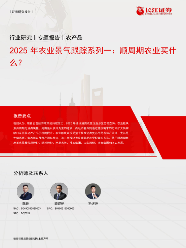 【长江证券】【20241219】2025年农业景气跟踪系列一:顺周期农业买什么?-10页 行业研究