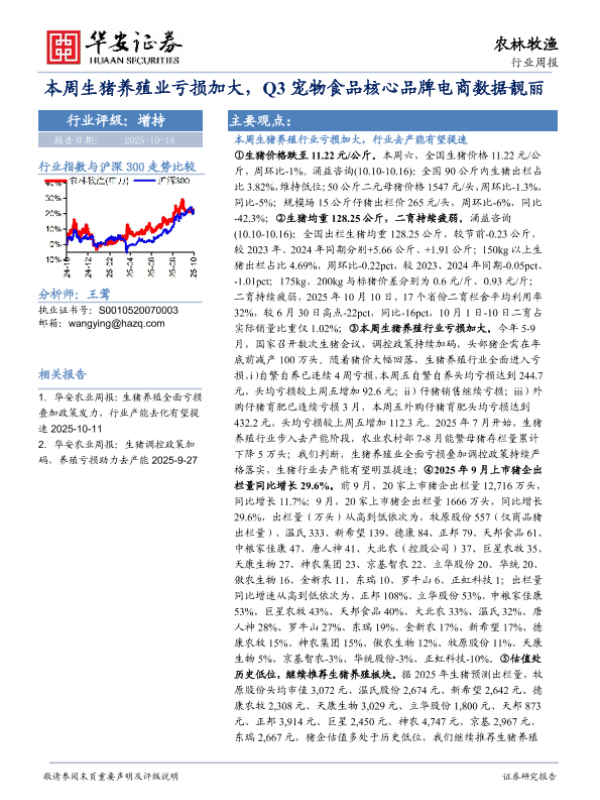 【华安证券】【202510】农林牧渔行业周报:本周生猪养殖业亏损加大,Q3宠物食品核心品牌电商数据靓丽-41页 行业研究