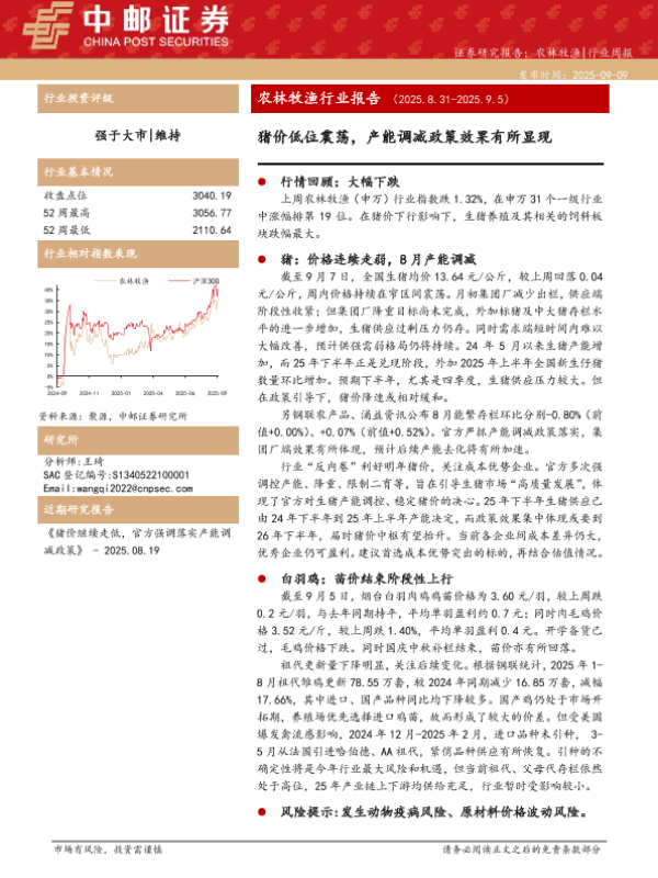 【中邮证券】【202509】农林牧渔行业报告:猪价低位震荡,产能调减政策效果有所显现-12页 证券期货研究报告