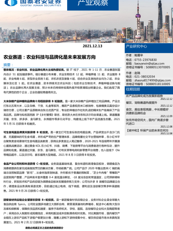 【国泰君安证券】【20211213】农业赛道:农业科技与品牌化是未来发展方向-7页 行业研究