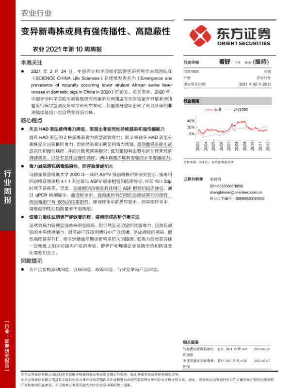 【东方证券】【20210228】农业2021年第10周周报:变异新毒株或具有强传播性、高隐蔽性-9页 行业研究