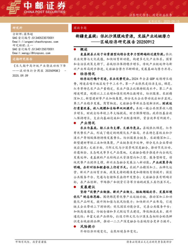 【中邮证券】【202509】新疆麦盖提:依托沙漠腹地资源,发掘产业延链潜力-30页 证券期货研究报告