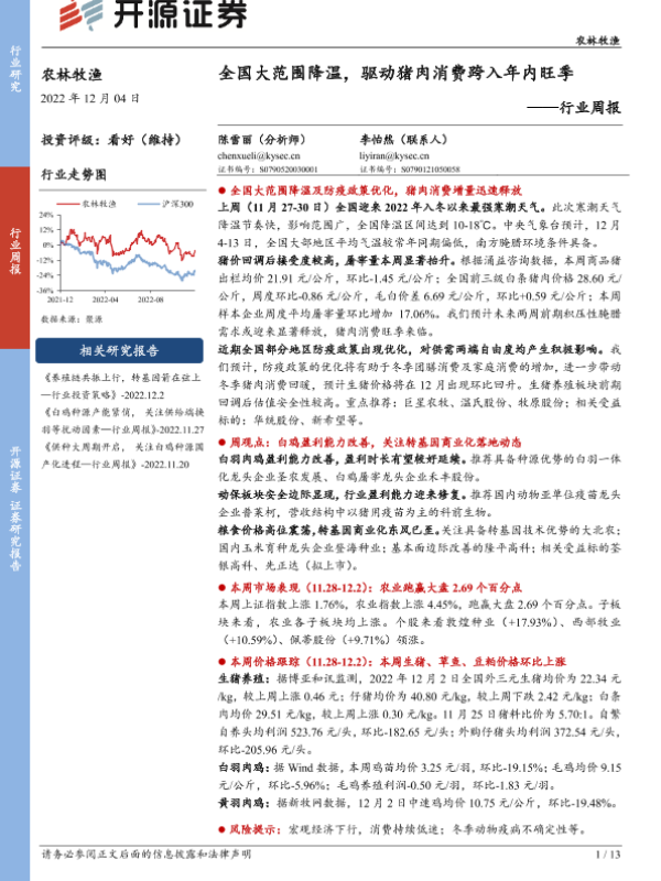 【开源证券】【20221204】农林牧渔行业周报:全国大范围降温,驱动猪肉消费跨入年内旺季-13页 行业研究