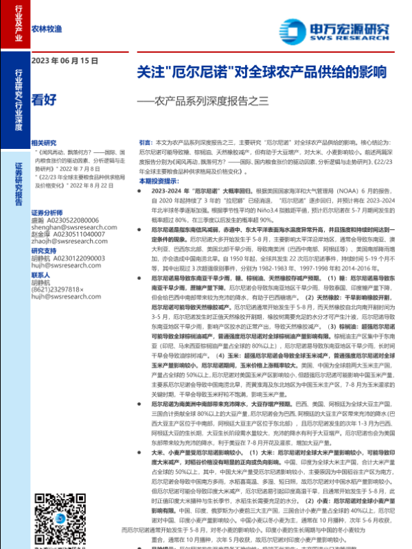 【申万宏源】【20230615】农林牧渔行业农产品系列深度报告之三:关注“厄尔尼诺“对全球农产品供给的影响-29页 行业研究