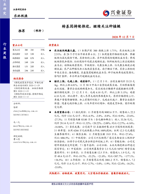 【兴业证券】【20201207】20201207-兴业证券-农林牧渔行业周报:转基因持续推进,继续关注种植链-15页 行业研究