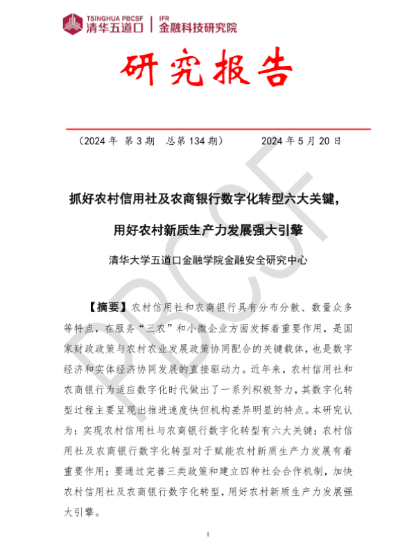 【清华大学五道口金融学院金融安全研究中心】【202405】抓好农村信用社及农商银行数字化转型六大关键,用好农村新质生产力发展强大引擎-13页 行业研究