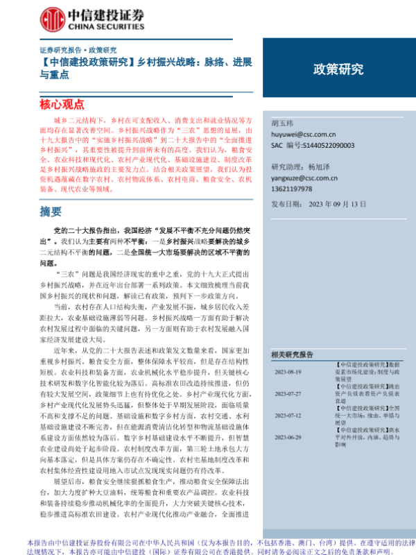 【中信建投证券】【20230913】政策研究:乡村振兴战略,脉络、进展与重点-30页 行业研究