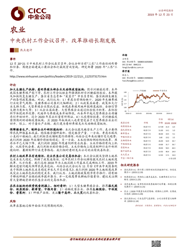 【中金公司】【20191223】农业:中央农村工作会议召开,改革推动长期发展-5页 行业研究