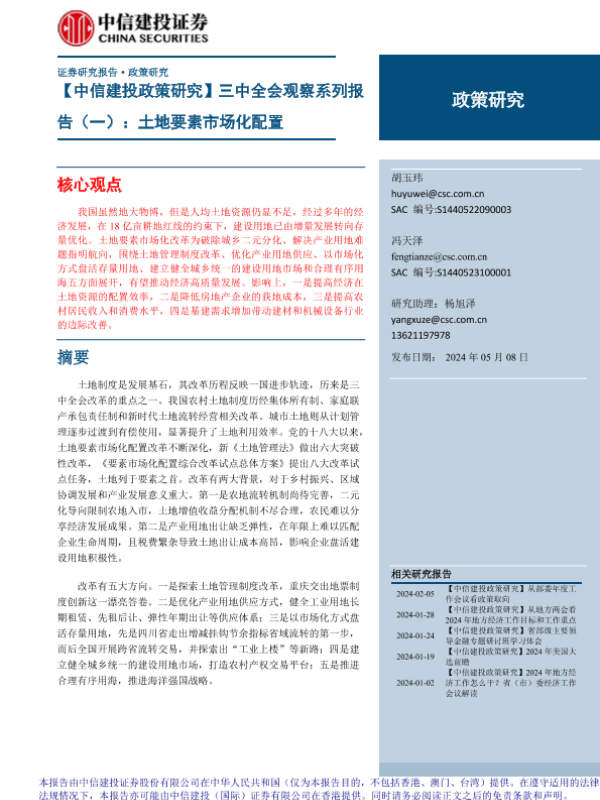 【中信建投证券】【20240508】三中全会观察系列报告(一):土地要素市场化配置-21页 行业研究