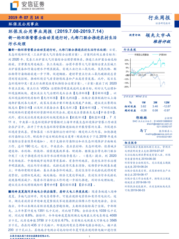 【安信证券】【20190714】新一轮环保督察全面动员进行时,九部门联合推进农村生活污水处理-20页 行业研究