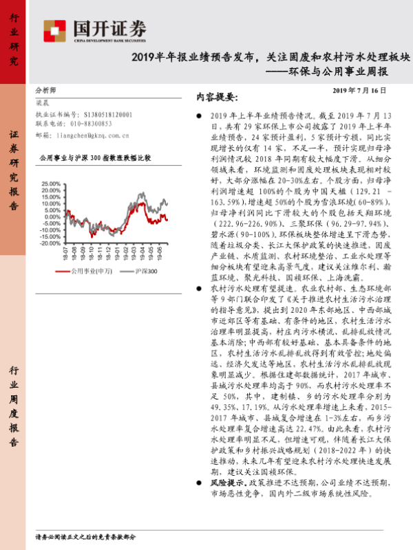【国开证券】【20190716】2019半年报业绩预告发布,关注固废和农村污水处理板块-9页 行业研究