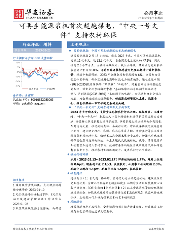 【华安证券】【20230220】可再生能源装机首次超越煤电,“中央一号文件”支持农村环保-15页 行业研究