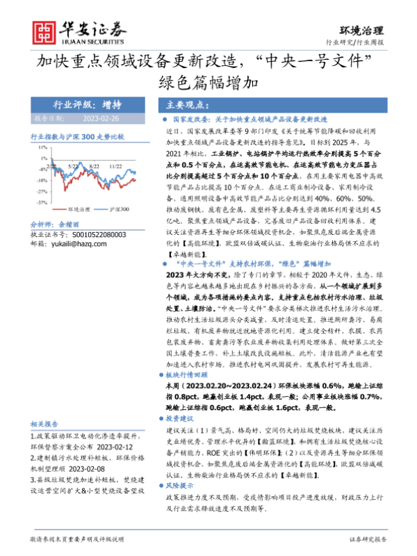 【华安证券】【20230226】加快重点领域设备更新改造,“中央一号文件”绿色篇幅增加-15页 行业研究