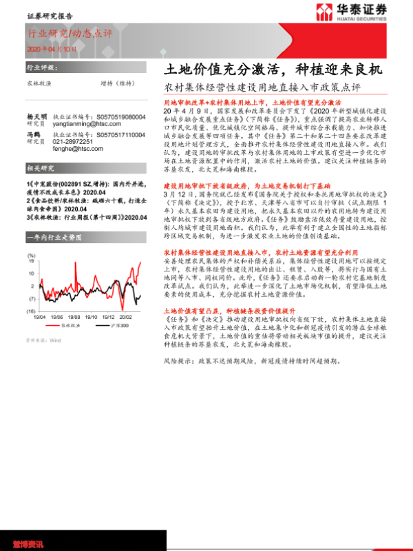【华泰证券】【20200410】农林牧渔:农村集体经营性建设用地直接入市政策点评-土地价值充分激活,种植迎来良机-3页 行业研究