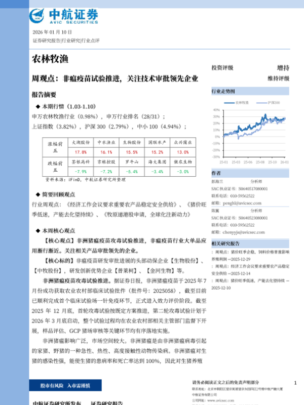 【中航证券】【202601】2026-01-18_中航证券_农林牧渔周观点:养殖利润回至盈利,产能去化趋势或不改.pdf-13页 证券期货研究报告