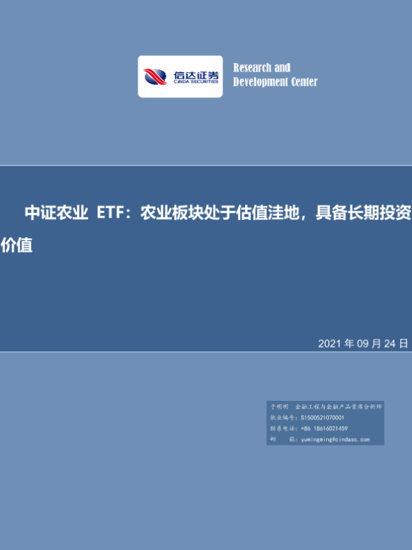 【信达证券】【20210924】中证农业ETF:农业板块处于估值洼地,具备长期投资价值-24页 行业研究