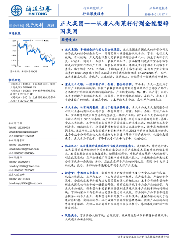 【海通证券】【20190117】农业行业深度报告:正大集团——从唐人街菜籽行到全能型跨国集团-47页 行业研究