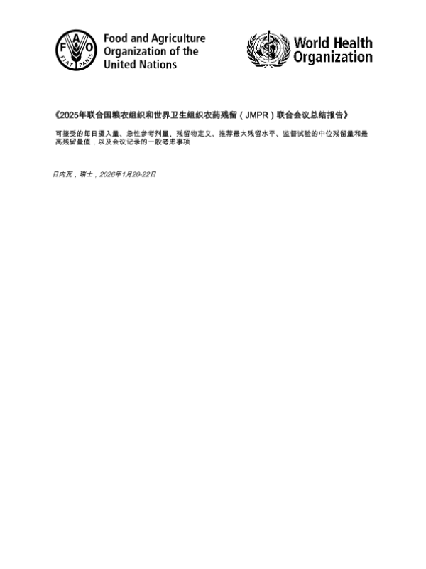 【联合国粮农组织(FAO)&世界卫生组织(WHO)】【2026】2025年联合国粮农组织和世界卫生组织农药残留(JMPR)联合会议总结报告-41页 会议纪要