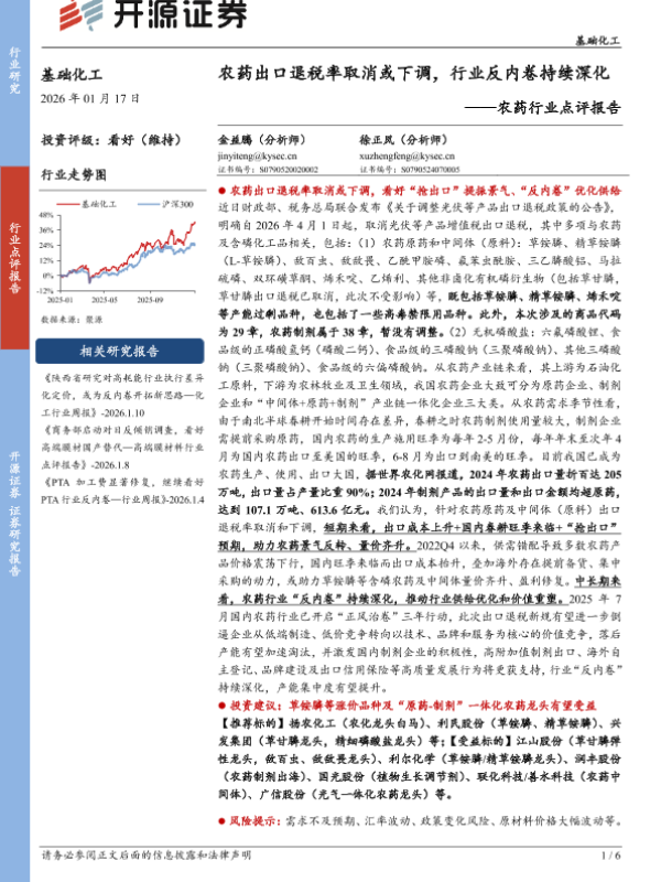 【开源证券】【202601】农药出口退税率取消或下调,行业反内卷持续深化-6页 证券期货研究报告