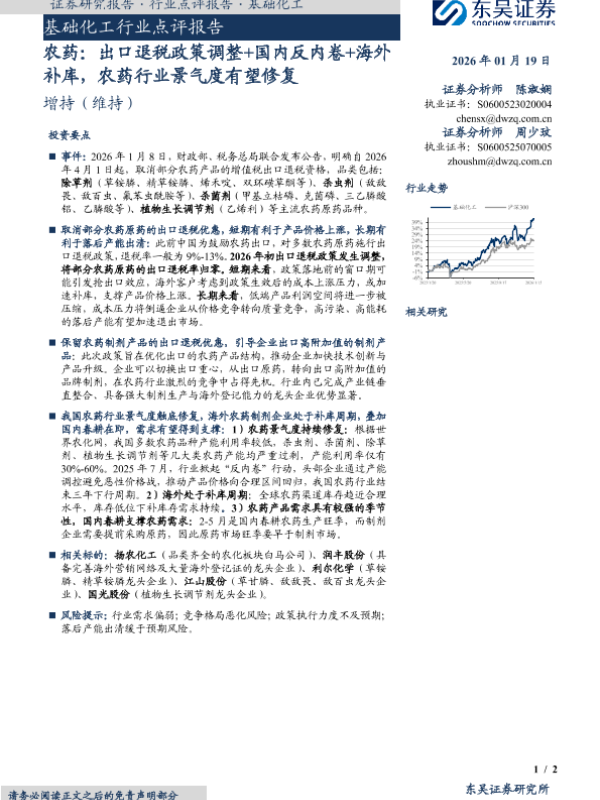 【东吴证券】【202601】农药行业景气度有望修复-2页 证券期货研究报告