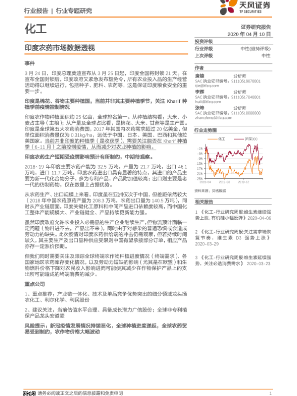 【天风证券】【20200410】化工行业专题研究:印度农药市场数据透视-9页 行业研究