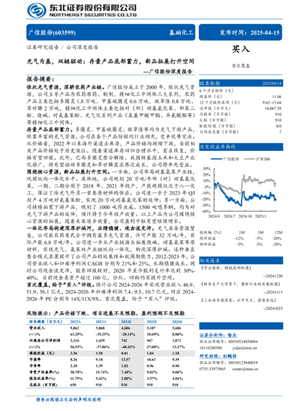 【东北证券】【20250415】广信股份(603599)深度报告:光气为基,双链驱动,存量产品底部蓄力,新品拓展打开空间-35页 公司研究