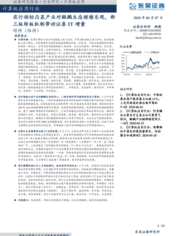 【东吴证券】【20200607】计算机应用行业周报跟踪:农行招标凸显产业对鲲鹏生态继续乐观,新三板转板机制带动证券IT增量-13页 行业研究